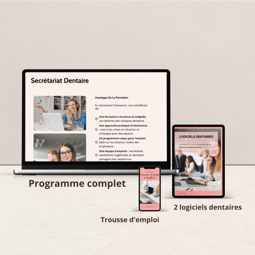 ✓ 8 modules complets en secrétariat dentaire